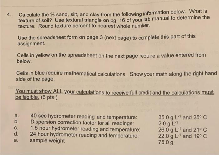 4 Calculate The Sand Silt And Clay From The Chegg Com